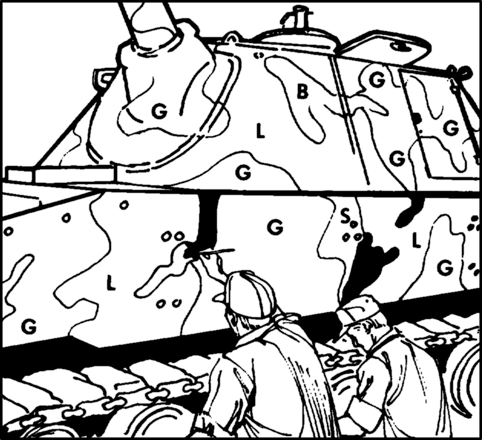 Σύμφωνα με τις οδηγίες που υπάρχουν στα δύο Εγχειρίδια, αρχικά σχεδιάζεται με κιμωλία το περίγραμμα της παραλλαγής, σύμφωνα με τα σχέδια 5-όψεων που περιλαμβάνονται στο Εγχειρίδιο TB 43-0147, ειδικά για τον κάθε τύπο οχήματος, και με απόκλιση +/- 5 εκατοστά από το σχέδιο. Στη συνέχεια ψεκάζονται ή βάφονται με πινέλο τα 3 υπόλοιπα χρώματα της παραλλαγής.